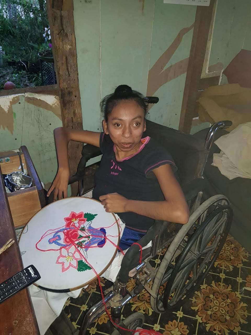 Iliana, who has been handicapped since birth, lives in the Village of Las Flores with her mother Carmen. When we first saw their home, it did not have any windows or a door. The floor was made of mud and rocks. There were huge gaps in the walls where you could see outside and above the roof. Thanks to your collaborations they now have windows and doors and a new concrete floor.
