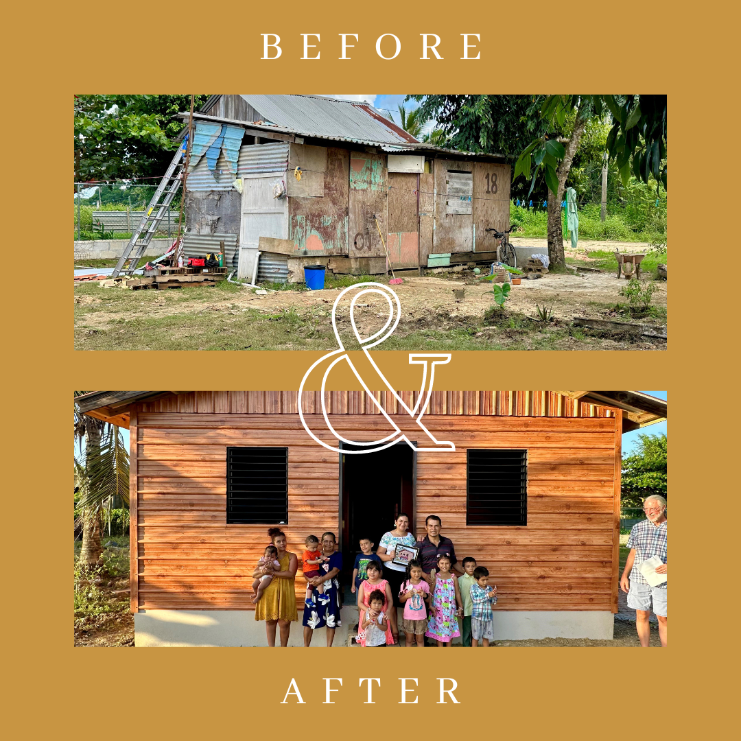 Roni and Meldra Ramirez have three children, Jasmine who is 2 months old, Claudia who is 5 years old and Daniel who is 8 years old. They are from Guatamala and have lived in Belize for 8 years. Roni is a hard worker, and to provide for his family he works in a factory that makes concrete blocks in the village of Spanish Lookout. They did not have a home of their own, and all 5 of them live in one room of his parents’ house. E
